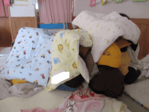 お昼寝中に地震発生!みんな素早く
